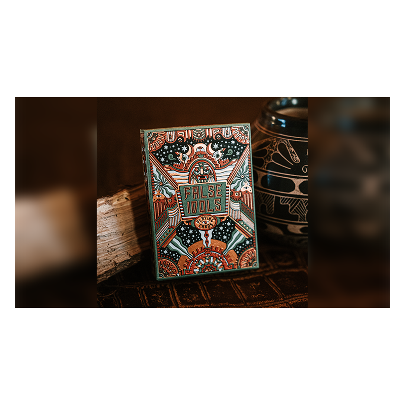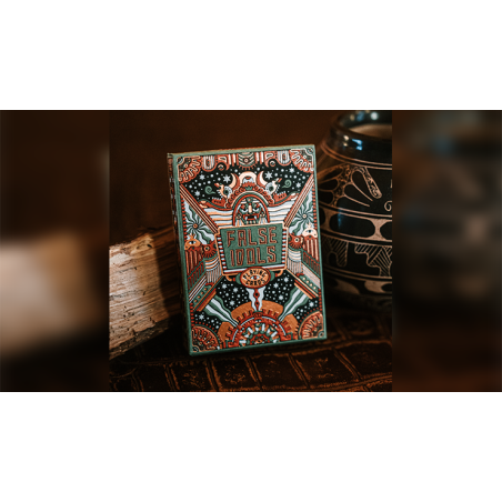 False Idols est un jeu de cartes 100 % personnalisé, avec les motifs du dos, tous les as, les cartes de la cour et les jokers. Emballé dans une boîte spectaculaire avec estampage et gaufrage à chaud - créant une magnifique texture en relief que vous pouvez ressentir.