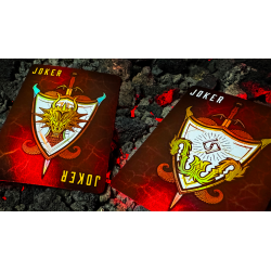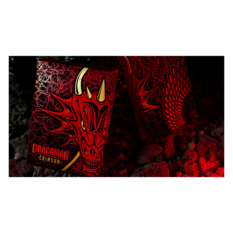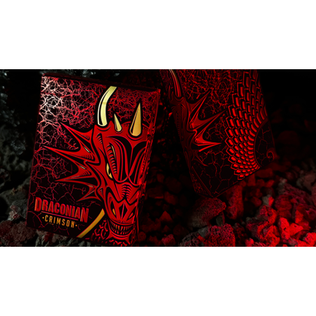Jeu Draconian Crimson : Inspiré des dragons de la tradition, le jeu Draconian Crimson dégage l'énergie d'un feu rouge intense. Imprimées par Legends Playing Card Co., les cartes Draconian Crimson sont imprimées sur leur matériau holographique (faces et dos)