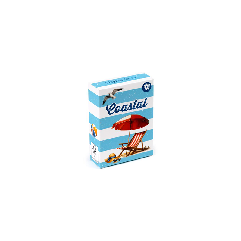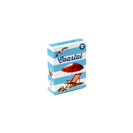 Cartes à jouer côtières avec des illustrations sur le thème de la plage Conçues au Royaume-Uni par « Puckator » Imprimées avec la plus haute qualité sur du papier cartonné de qualité casino 310 g/m² avec un noyau noir (finition lin) Le jeu comprend des cartes à jouer standard avec un design unique
