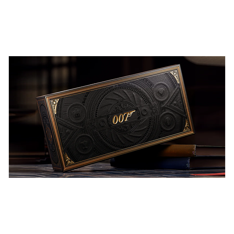 Coffret Édition Spéciale 007. Ce coffret édition spéciale comprend un compartiment secret, déverrouillé grâce à un stylo 007 en laiton massif fabriqué à la main. Il contient trois jeux de cartes James Bond Édition OR. Le coffret contient : trois jeux Édition OR, 007