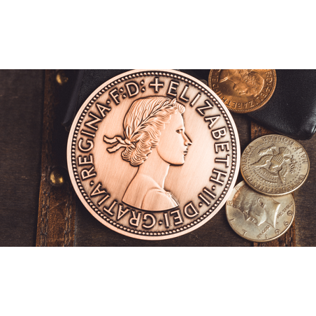 The Bacon Jumbo Coin is a premium prop available in English Penny designs. These jumbo coins are crafted with realistic colors and a high-quality finish that closely matches the look of standard-sized coins. With a milled edge, they are easy to pal