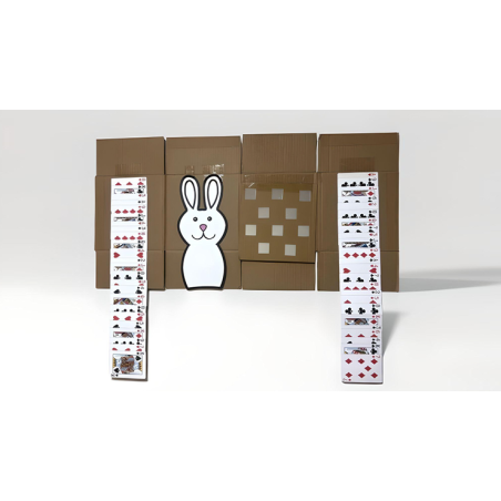 Le magicien montre une boîte vide au public et demande à quelqu'un d'examiner la boîte. La question est : « Assurez-vous qu'il n'y a pas de trappes, de miroirs, de jeux de cartes ou de miroirs... » Le magicien fait alors tomber la boîte pour révéler que la seule chose à l'intérieur est... un lapin, des miroirs et des jeux de cartes, le tout à l'intérieur d'une trappe.